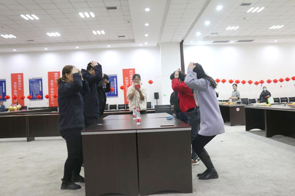 還有我們充滿趣味性的雙人背靠背夾氣球互動游戲,兩位美女主持人熱情洋溢,朝氣蓬勃,得到了員工一致性好評。