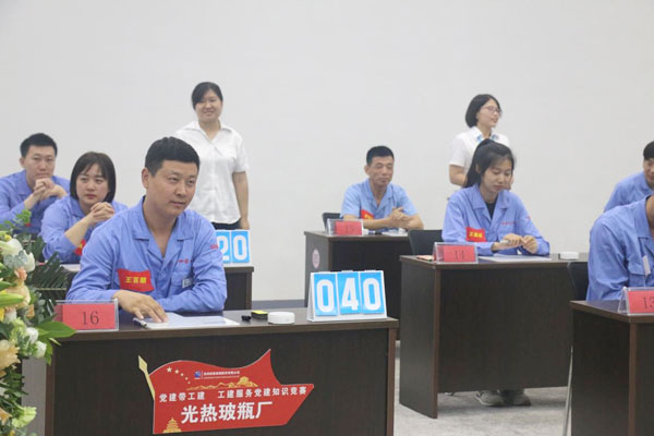 四星公司黨支部書記、董事長王煥一在活動祝詞中指出,通過競賽把參賽隊員的工匠風(fēng)范發(fā)揮出來,把參賽隊員的愛黨愛崗敬業(yè)精神展現(xiàn)出來,同時要求將繼續(xù)做實黨建帶工建工作機制,充分發(fā)揮企業(yè)主體作用,讓廣大產(chǎn)業(yè)工人唱主角,積極投身改革,為企業(yè)高質(zhì)量發(fā)展添磚加瓦,從而實現(xiàn)企業(yè)發(fā)展與員工成長的同頻共振。 本次知識競賽共有6支代表隊參加,分別為公司科室代表隊、玻瓶一廠代表隊、玻瓶二廠代表隊、紙房頭廠區(qū)玻管廠代表隊、光熱廠區(qū)玻管廠代表隊、光熱廠區(qū)玻瓶廠代表隊,每支代表隊由3名成員組成。競賽分為個人必答題、搶答題、風(fēng)險題和觀眾互動題4種題型,各隊參賽選手應(yīng)按照不同題型要求答題。比賽中,各代表隊選手相互配合,搶答積極,回答精準(zhǔn),現(xiàn)場氣氛緊張熱烈。